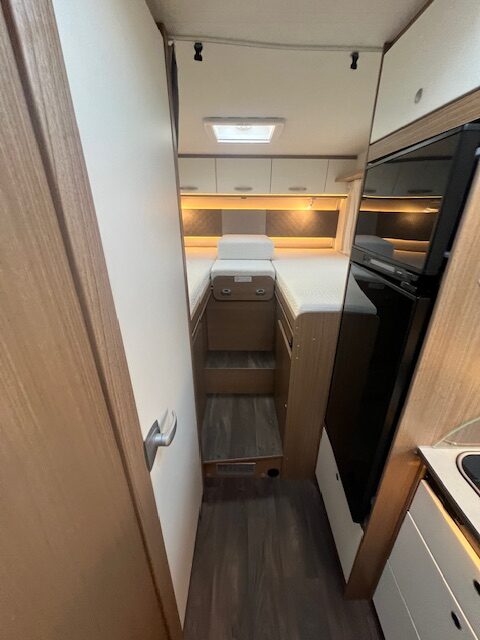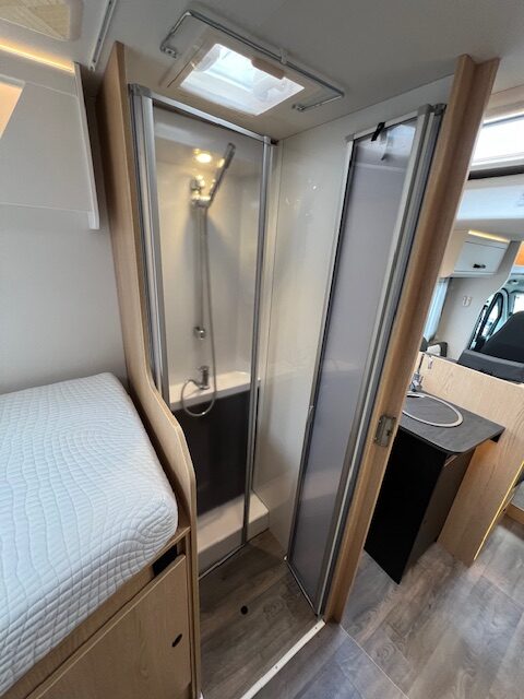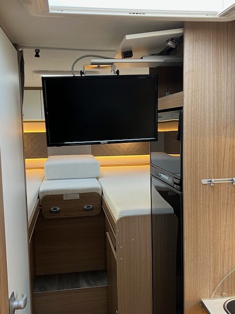 Ausstattungs-Highlights: • Geräumiger Wohnraum: Cleverer Grundriss mit Einzelbetten und komfortablem Wohnbereich • Vollausgestattete Küche: Großer Kühlschrank, 3-Flammen-Gasherd und Spüle • Badezimmer: Separate Dusche und WC für höchsten Komfort • Wintertauglich: Hervorragende Isolierung und leistungsstarke Heizung • Technik & Autarkie: Solaranlage, Lithium-Batterie und modernste Elektronik